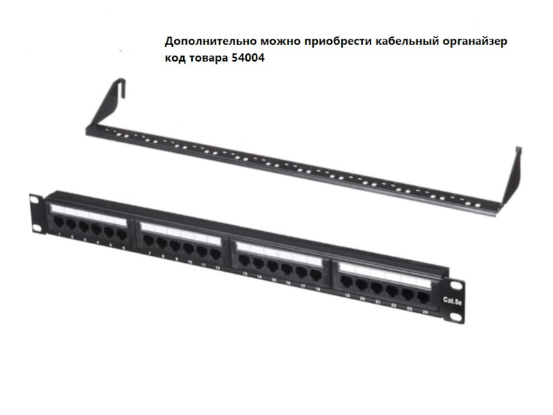 Патч-панель UTP, 19", 24 порта RJ45, cat.5е, 1U, 110 Type, "L"