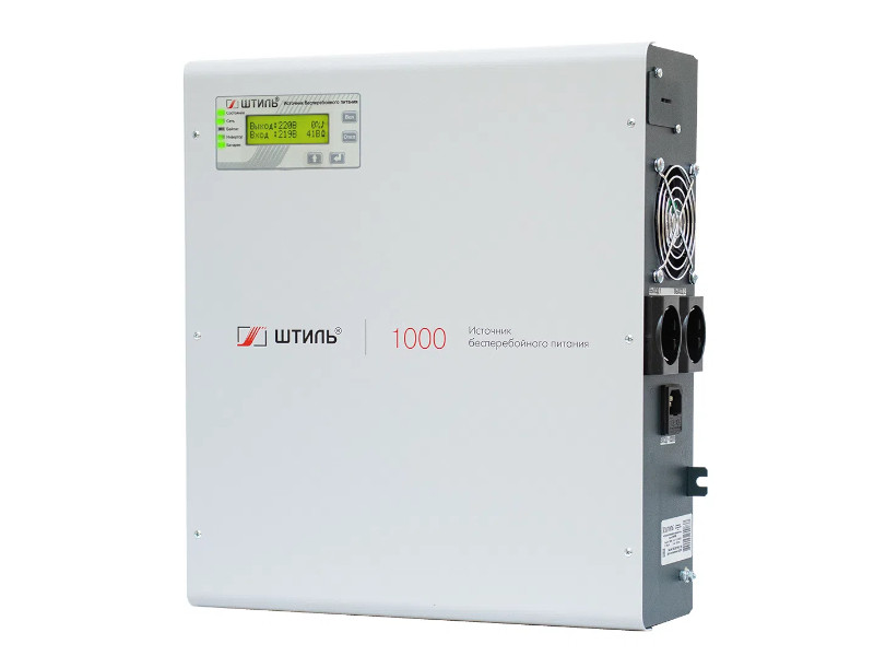 SW1000SL Источник бесперебойного питания Штиль 1 кВА, настенный, однофазный, встроенные АБ 3х9 Ач, 0,9Квт, напряжение 220В, Типоразмер 379х357х116мм, серый