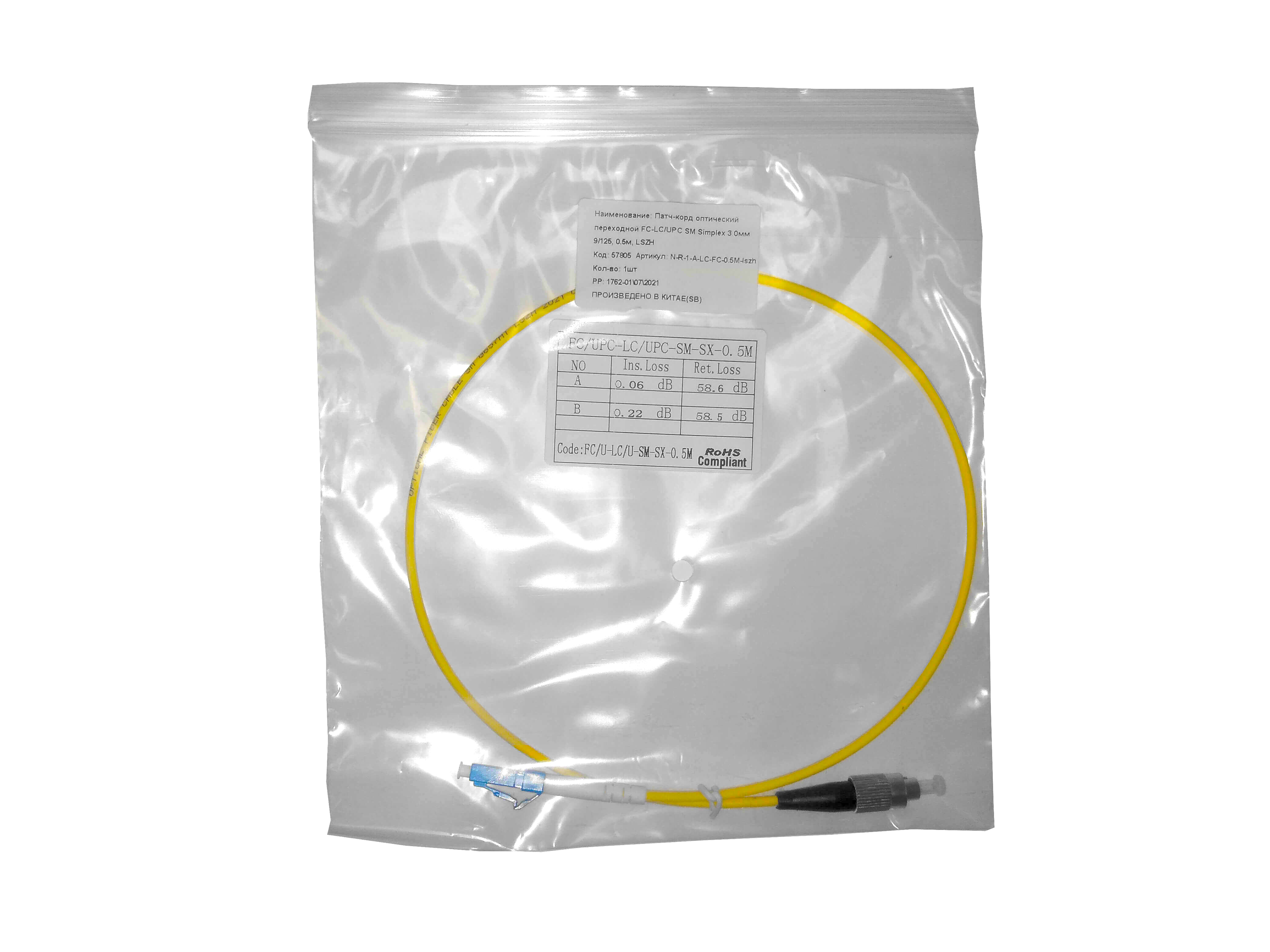 Патч-корд оптический переходной FC-LC/UPC SM Simplex 3.0мм 9/125, 0.5м, LSZH