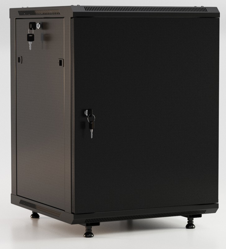 Hyperline TWB-FC-1866-SR-RAL9004 Шкаф настенный 19-дюймовый (19"), 18U, 920x600х600мм, металлическая передняя дверь с замком, две боковые панели, с возможностью установки на ножки (в комплекте), цвет черный (RAL 9004) (разобранный)