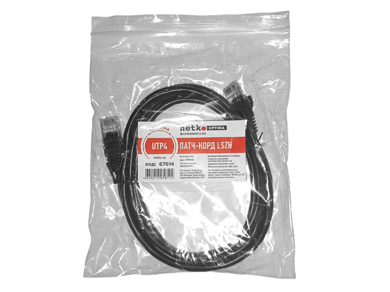 Патч-корд UTP4 cat 5e, 1,5м, ВС, LSZH, черный, литой коннектор NETKO Optima