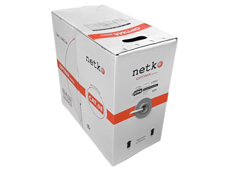 Кабель UTP4 cat.5е Cu PVC NETKO Optima Gold, одножильный, 305м, Проходит Fluke тест, серый