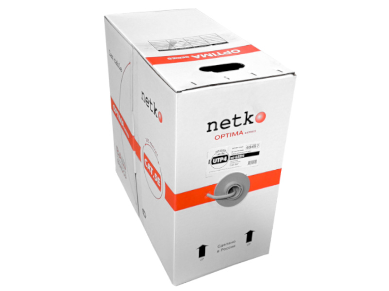 Кабель UTP4 cat.5е Cu нг(А)-HF LSZH NETKO Optima Gold, одножильный, 305м, малодымный, не содержащий галогенов, Проходит Fluke тест, серый