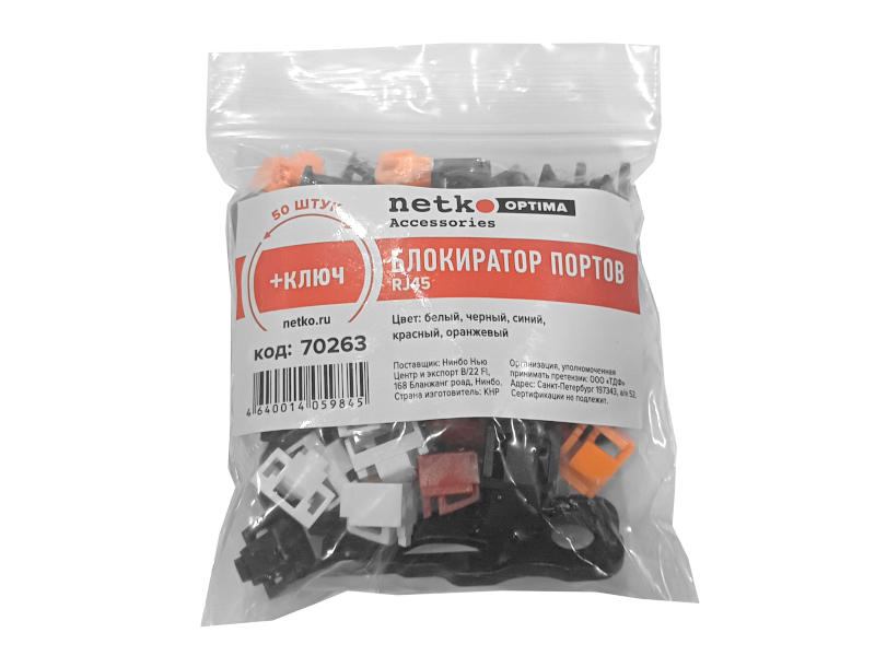 Блокиратор портов RJ45 (50шт) белый, черный, синий, красный, оранжевый, NETKO Optima + ключ