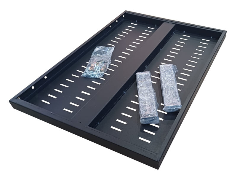 Полка подходит для шкафов 19" Netko с рабочей глубиной не менее 600мм, крепится на 4 монтажные стойки: