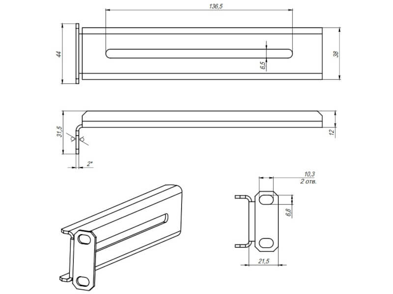 Полка крепится ушками к монтажному профилю, расстояние между ушками 600мм.