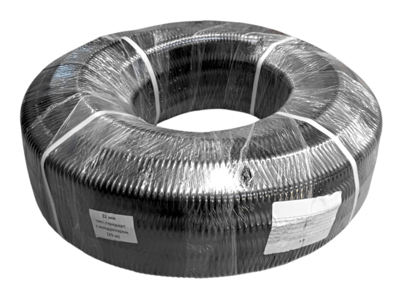 Труба гофрированная, ПНД, легкая, с зондом, d32 мм, черная, 25м "С" (аналог 56989)