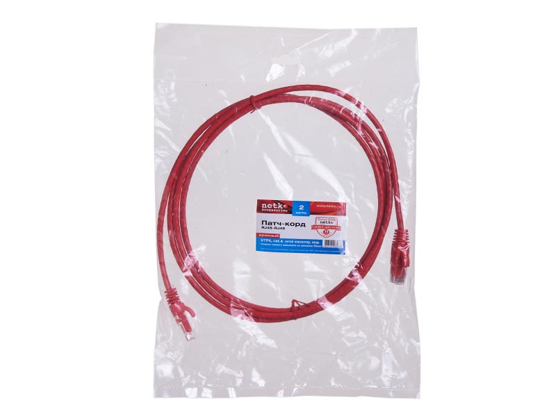 Патч-корд UTP4 cat.6, 2.0м, литой коннектор, красный, Netko CKC