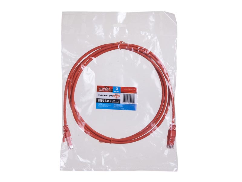 Патч-корд UTP4 cat.6, 2.0м, литой коннектор, LSZH, оранжевый, Netko CKC
