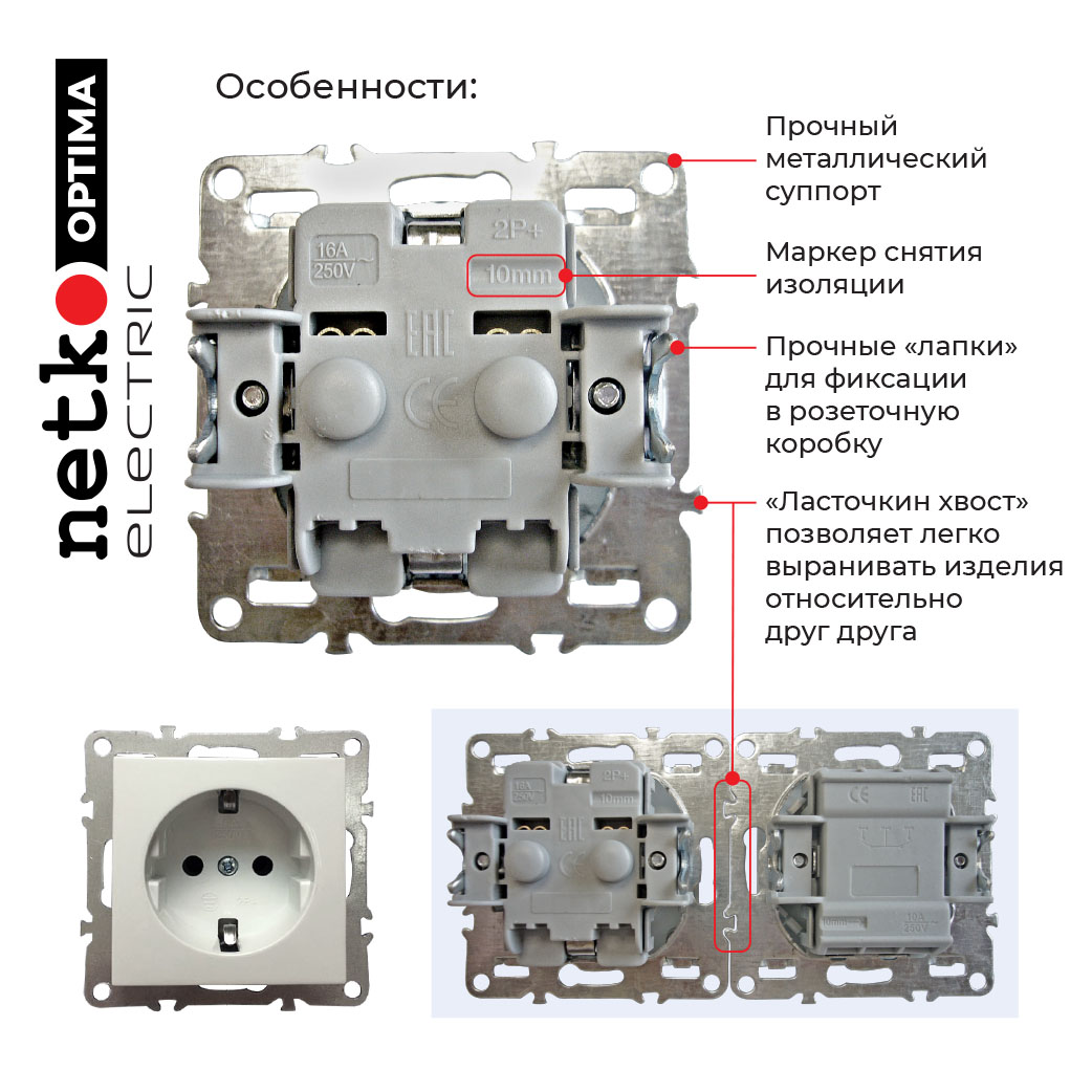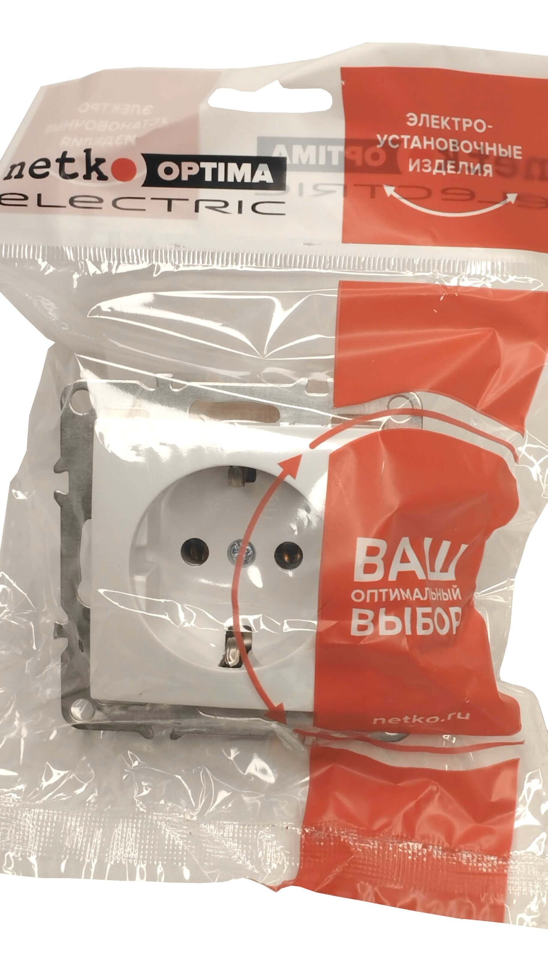 Розетка в рамку с заземлением, 16А, пластик, IP20, цвет белый NETKO Optima Electric