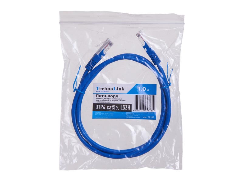 Патч-корд Technolink UTP4 cat 5e, 1,0м, ВС, LSZH, синий, литой коннектор