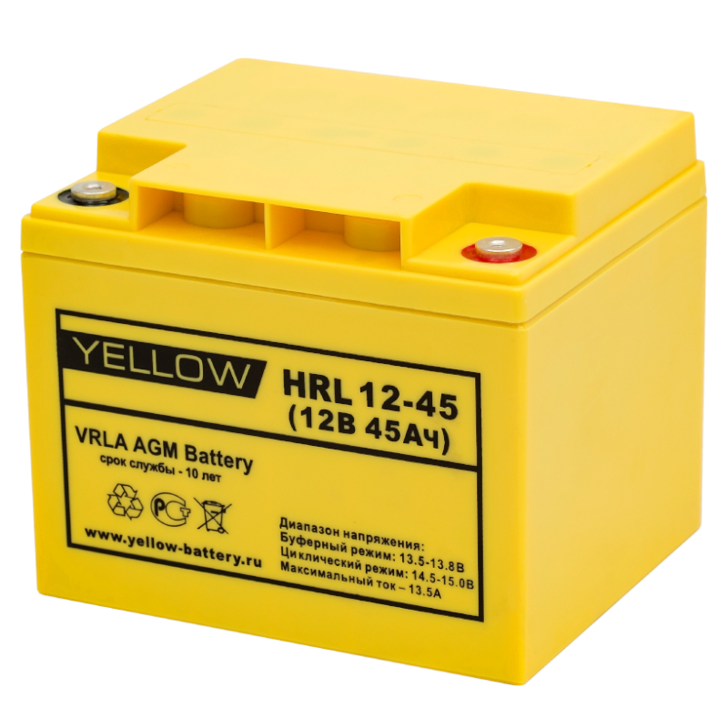 Аккумуляторные батареи YELLOW серии HRL произведены по технологии AGM (электролит абсорбирован в стекловолоконном сепараторе). Аккумуляторы являются герметизированными, необслуживаемыми, с системой рекомбинации газов (VRLA).