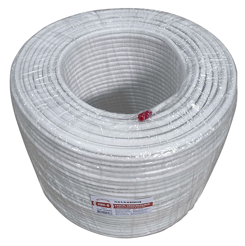 Кабель коаксиальный КВК-В, (CU, оплетка 80 нитей CCA) + кабель питания 2x0.5мм2 (CU, многожильный), белый (200м) NETKO Optima