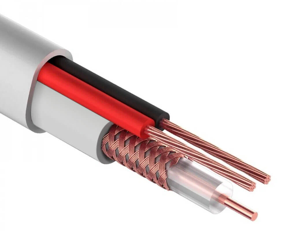 Кабель коаксиальный КВК позволяет одновременно передавать как видеосигнал, так и питание на оборудование. Коаксиал и кабель питания расположены внутри одной внешней оболочки, что обеспечивает удобство прокладки и подключения.