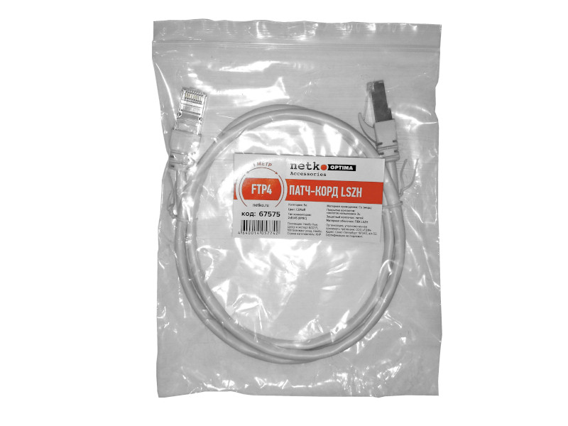 Патч-корд FTP4 cat.5е, 1.0м, BC, LSZH, серый, литой коннектор NETKO Optima