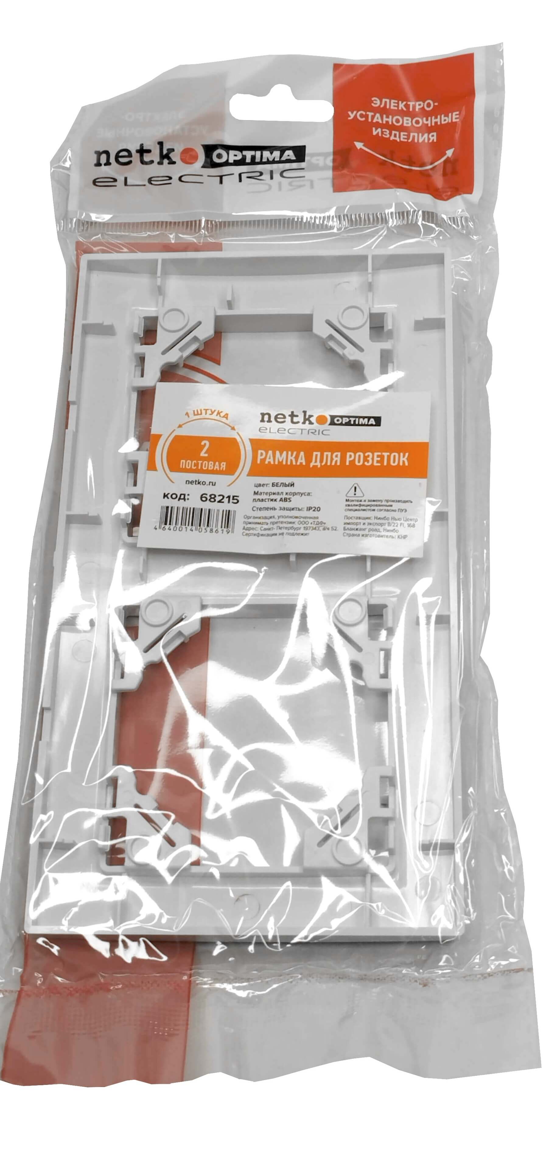 Рамка 2-постовая, пластик, IP20, цвет белый NETKO Optima Electric
