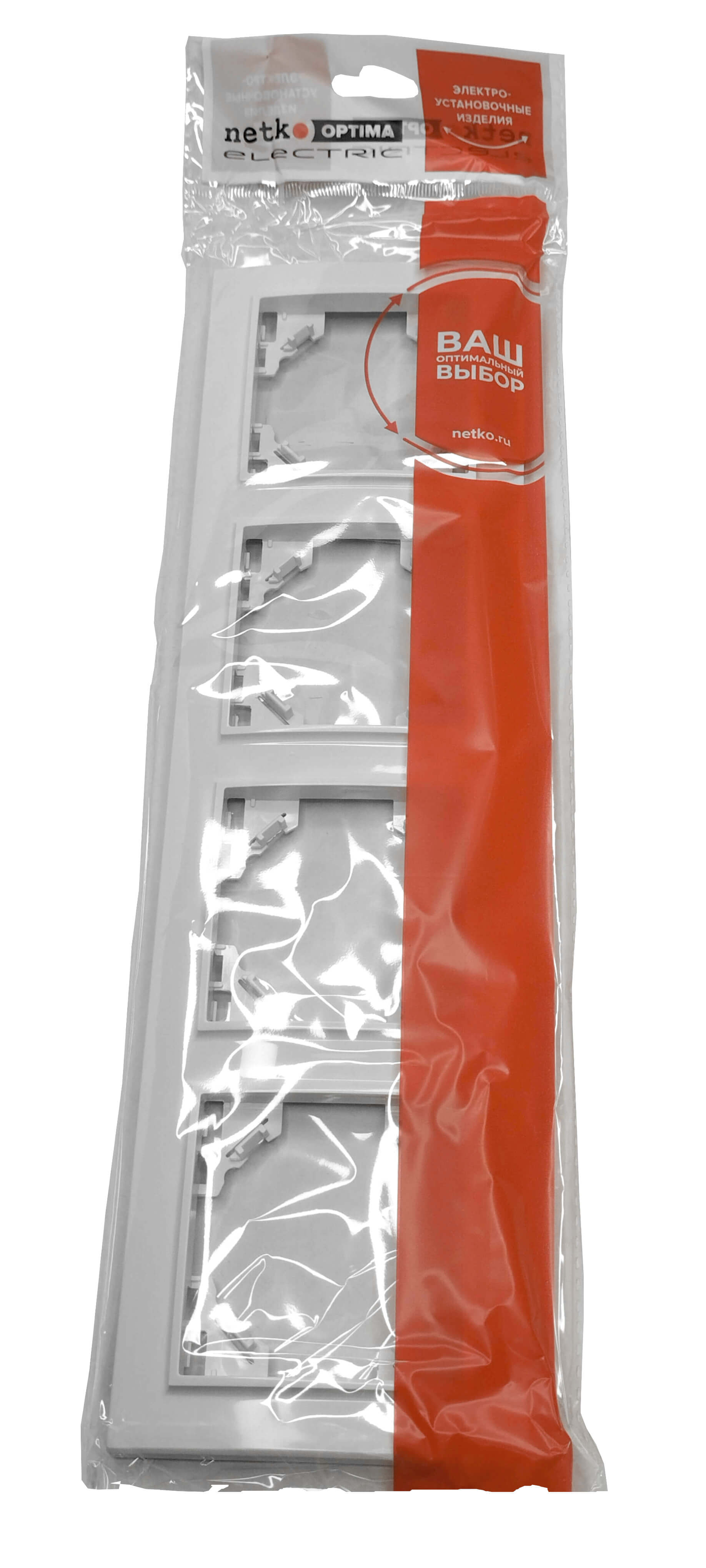 Рамка 4-постовая, пластик, IP20, цвет белый NETKO Optima Electric