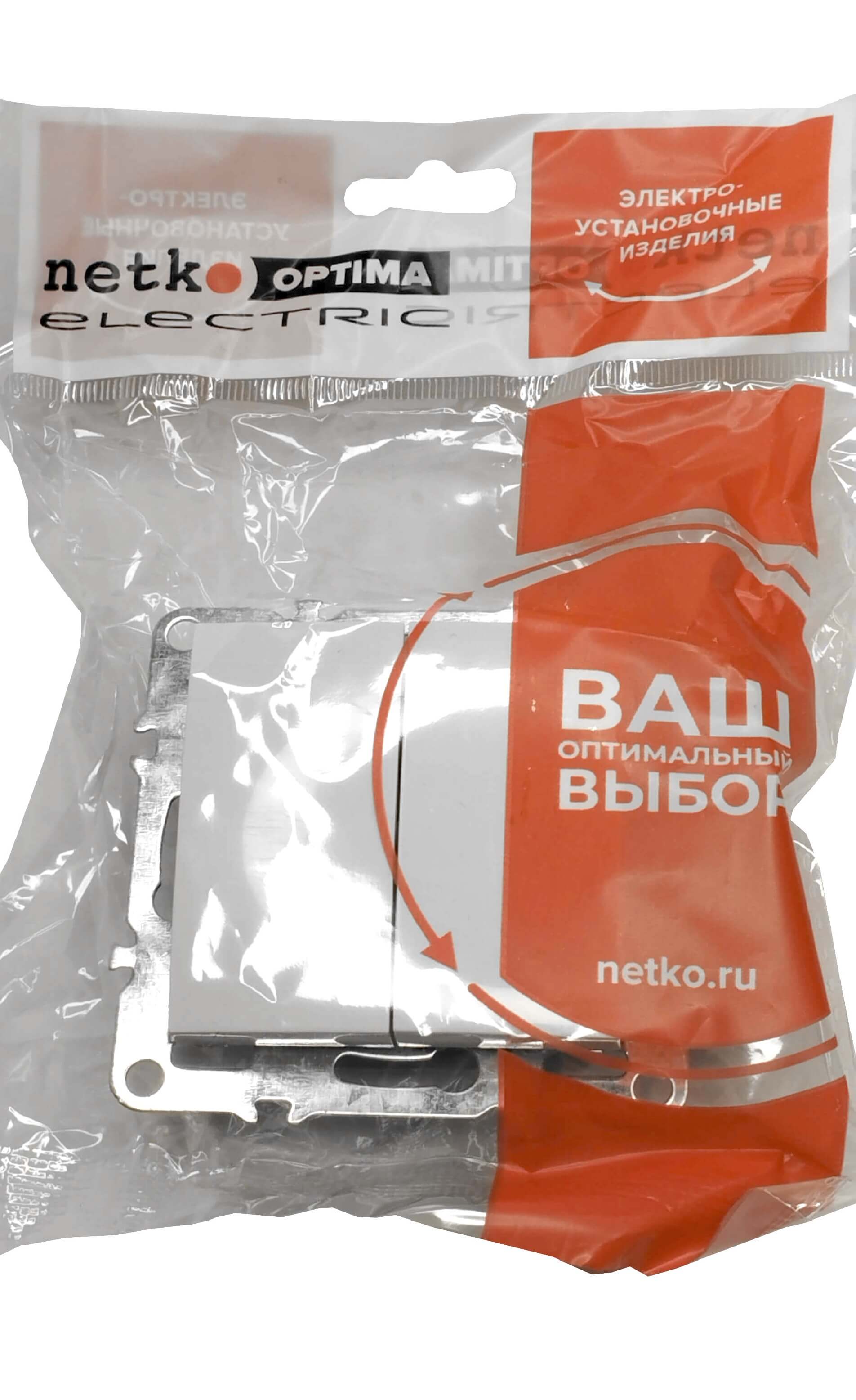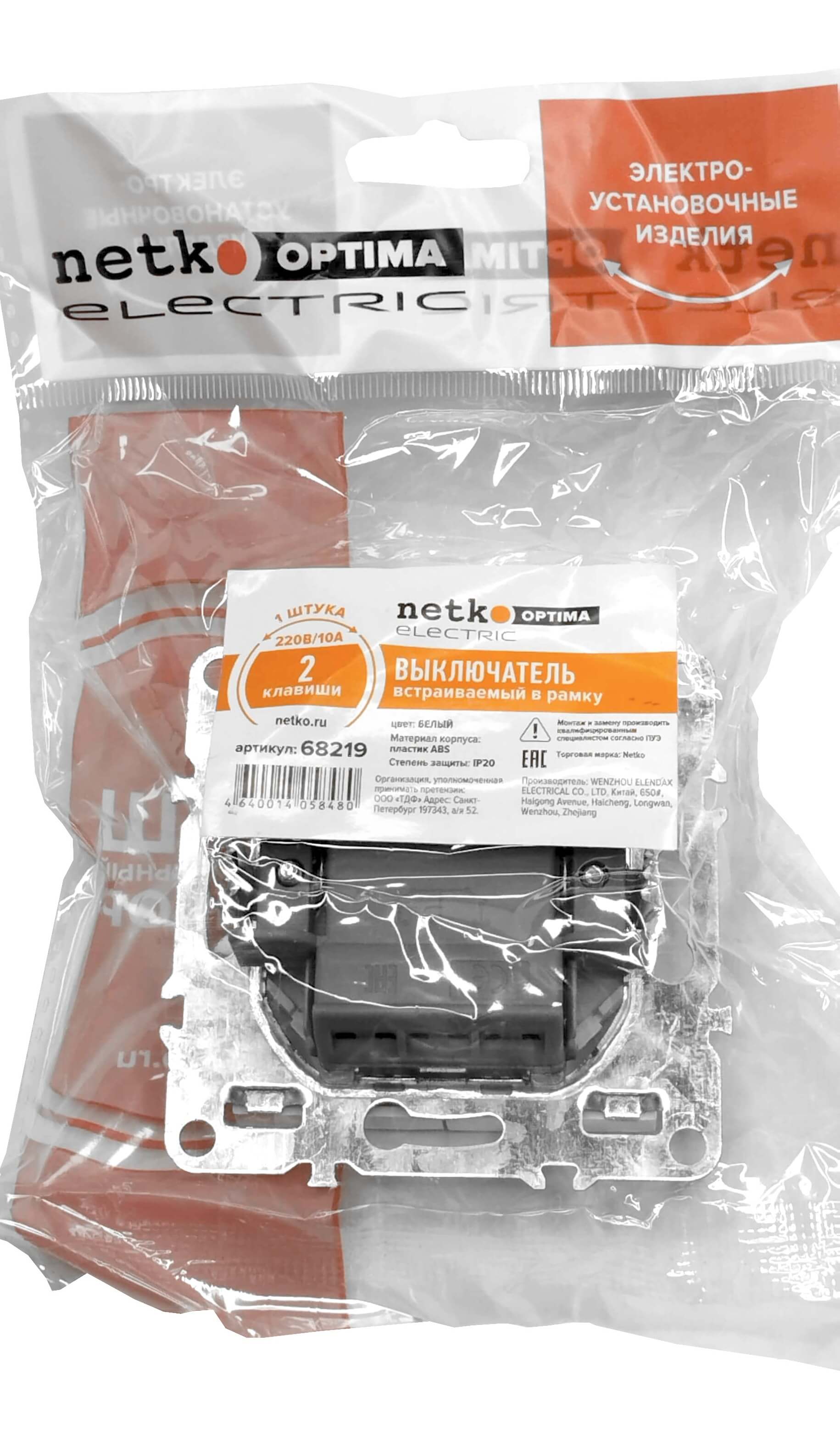Выключатель двухклавишный, встраиваемый в рамку, 10A, пластик, IP20, цвет белый NETKO Optima Electric