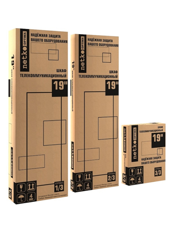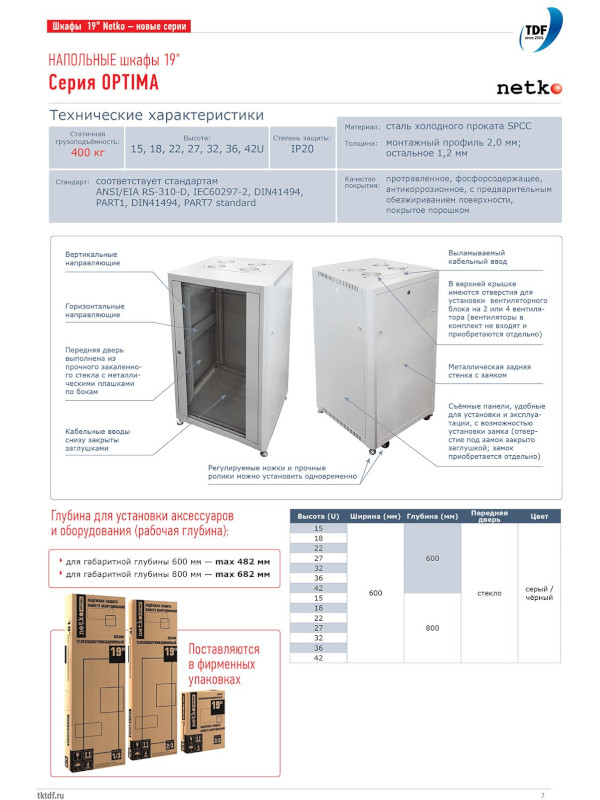 Шкаф напольный 19" Netko 42U серия Optima (600х800х2022), передняя дверь стекло, черный, разобранный (упакован в 3 коробки)