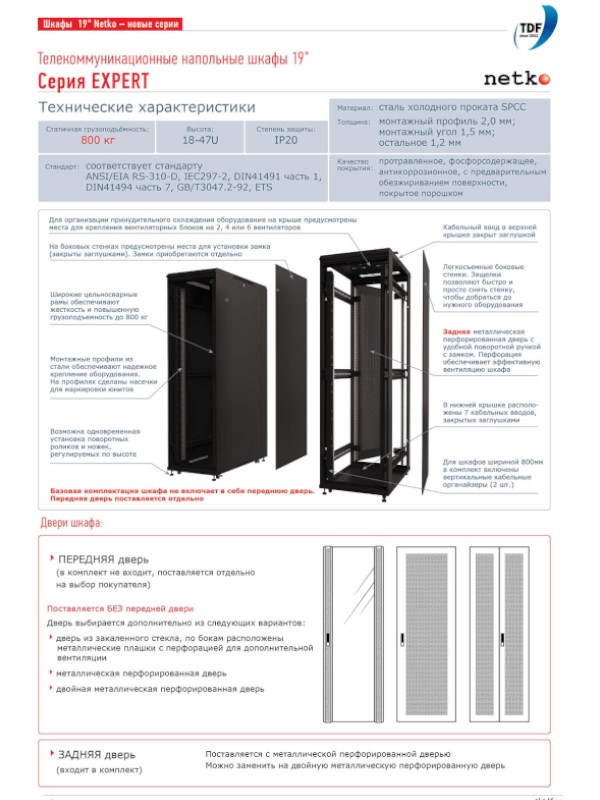Соответствует стандарту ANSI/EIA RS-310-D, IEC297-2, DIN41491 часть1, DIN41494 часть7, GB/T3047.2- 92, ETS