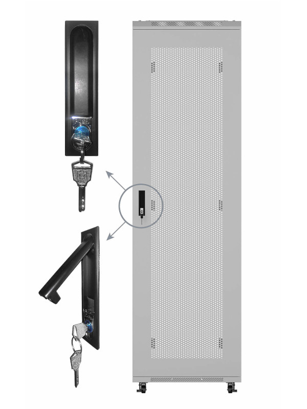 • Задняя дверь - металлическая, перфорированная с удобной поворотной ручкой с замком