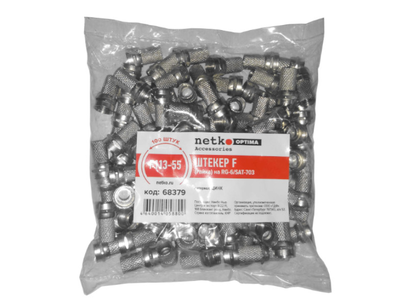 Штекер F (гайка) на RG-6/SAT-703 (цинк) (F113-55), NETKO Optima "L"