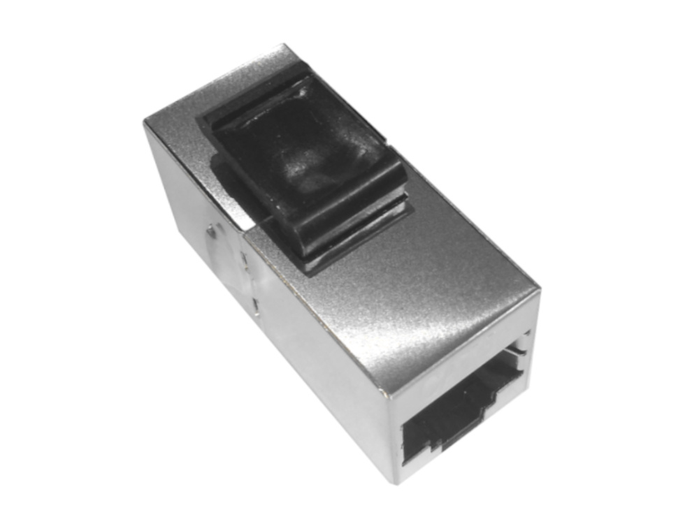 Проходной модуль Keystone для патч-панели. С обеих сторон находится гнездо RJ-45.