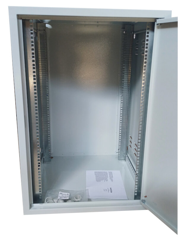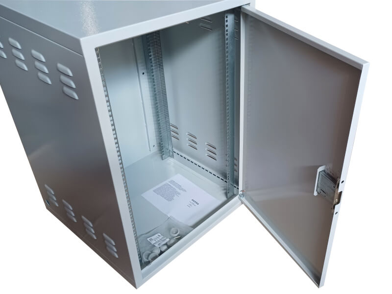 Антивандальный Шкаф 18U распашной, (600x600x877мм) 19" направляющие, передняя дверь металл, замок, серый Netko