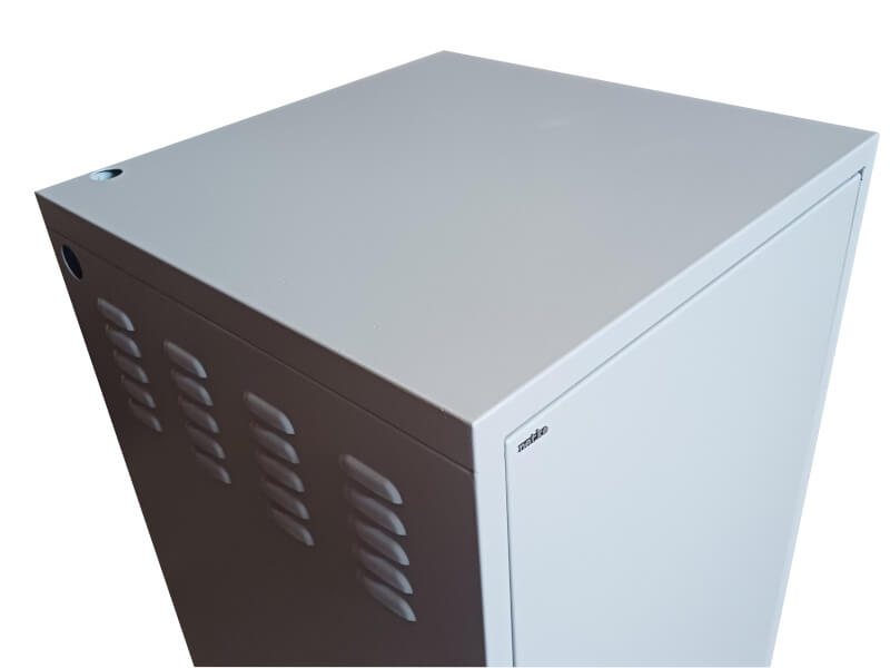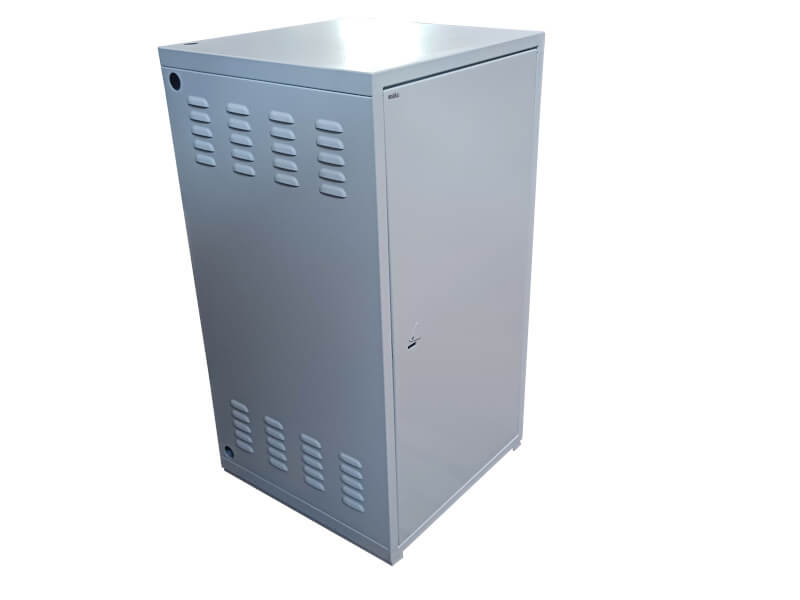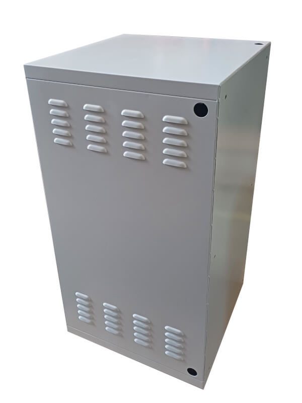 Конструкция шкафа представляет собой цельносварной корпус с вентиляционными отверстиями по бокам.