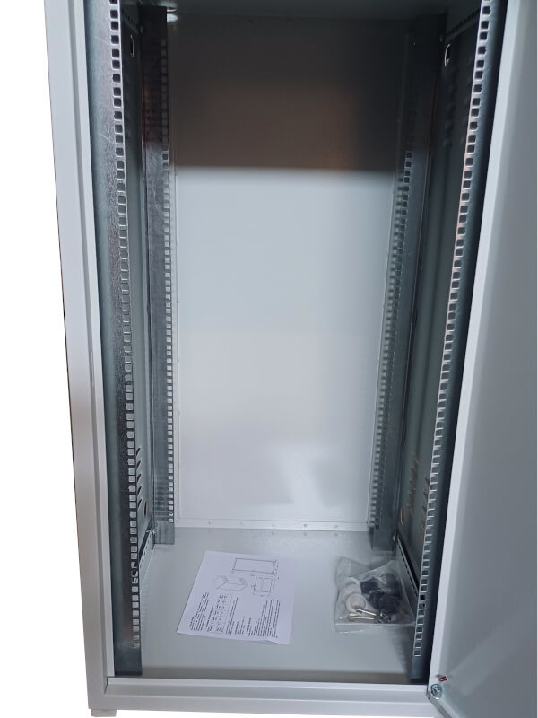 Антивандальный Шкаф 22U распашной, (600x600x1120мм) 19" направляющие, передняя дверь металл, замок, серый Netko