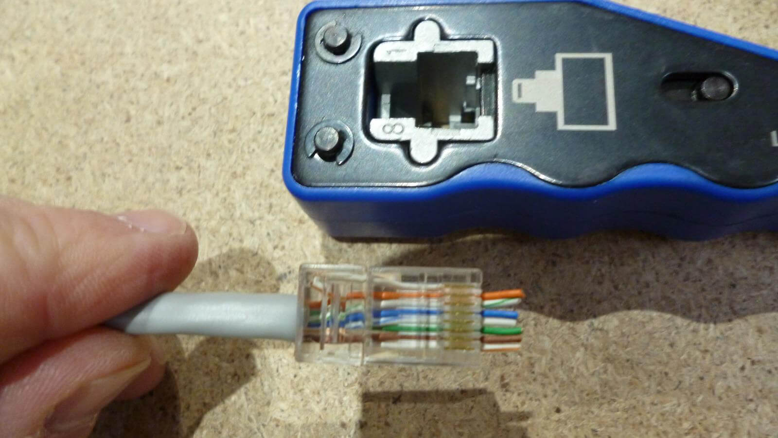 - при опрессовке сквозного коннектора легче проконтролировать расположение проводников визуально, тогда как при обычном способе пары могут перепутаться внутри разъема